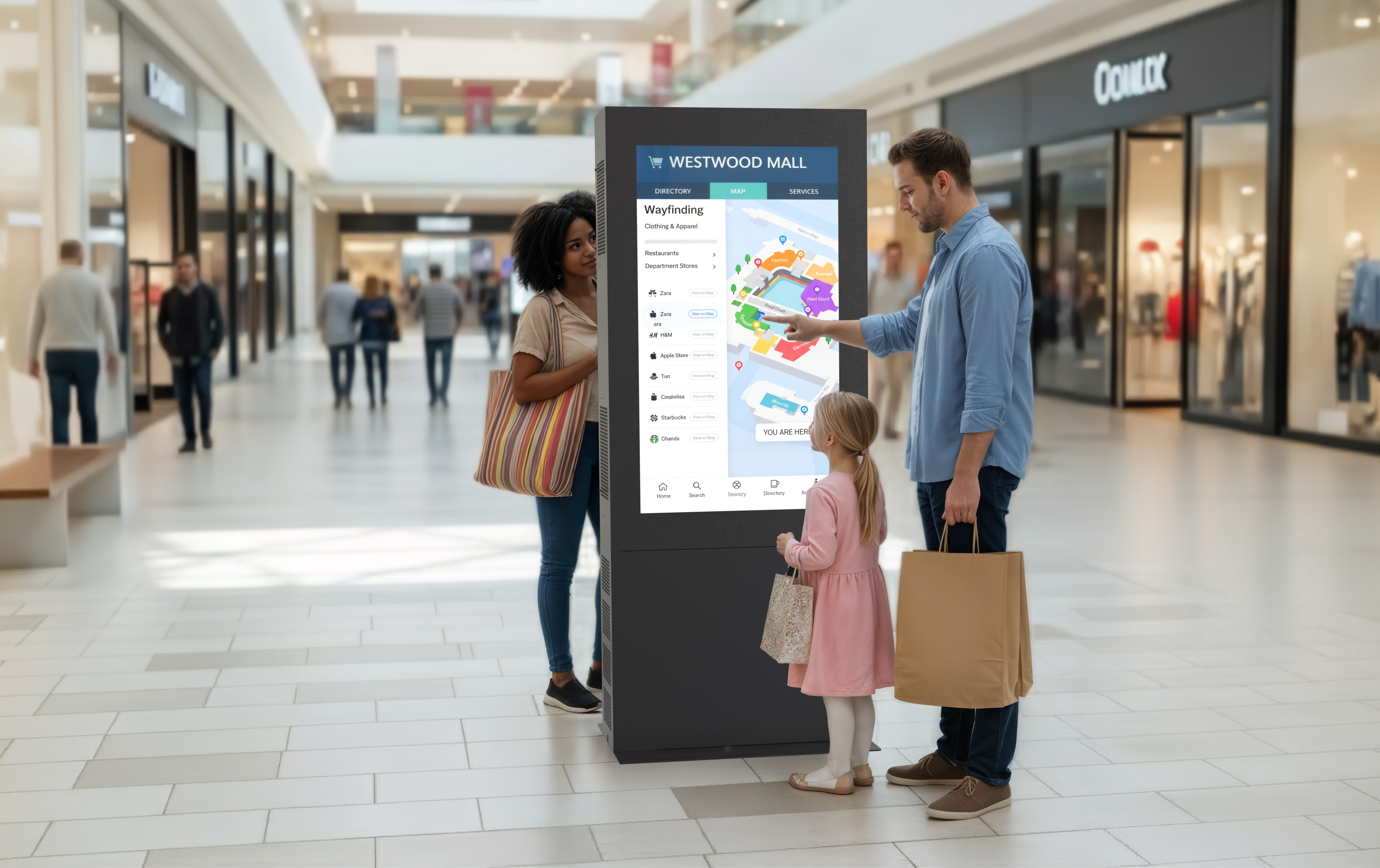 Interactive 55" back-to-back freestanding kiosk